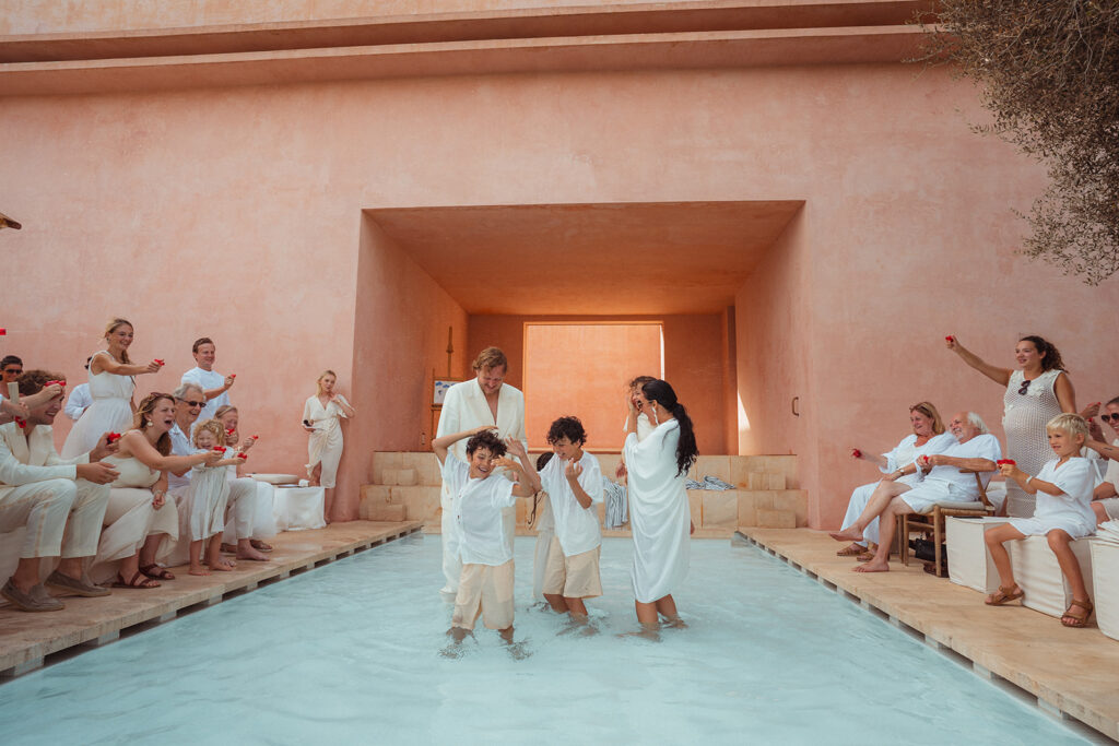 Na de brunch tijd voor een poolparty en relaxtime om de dag af te sluiten met een emotionele ceremonie en doop van de 4 kinderen.