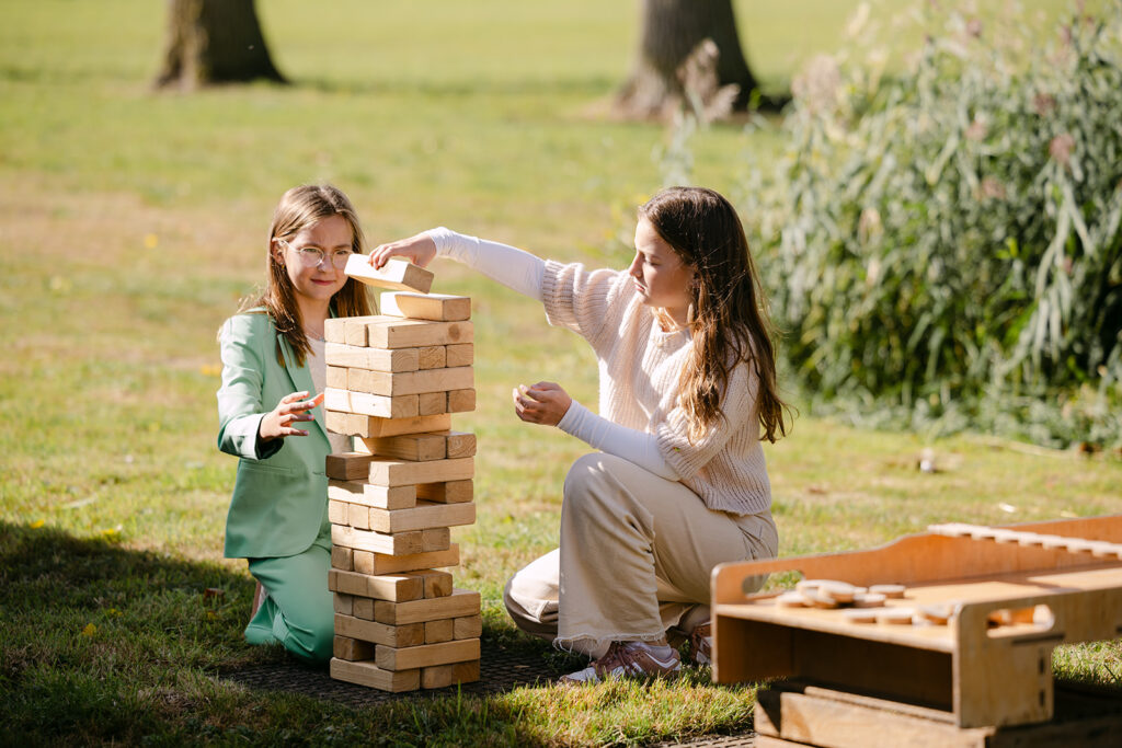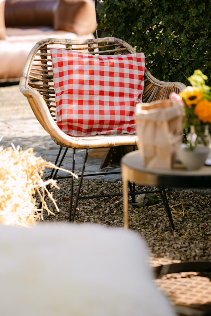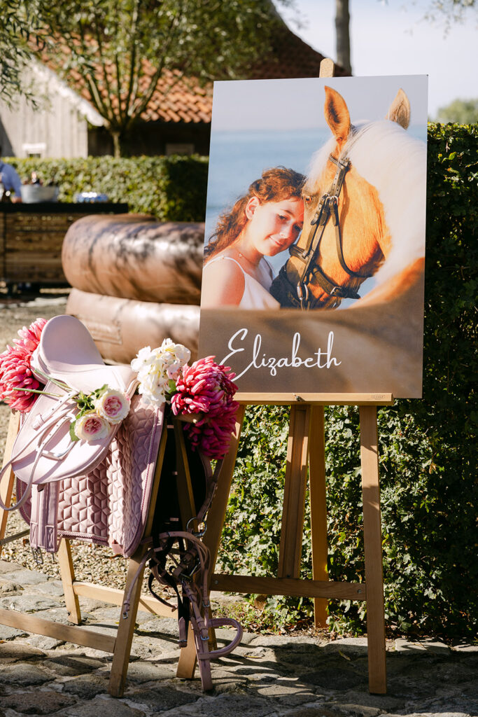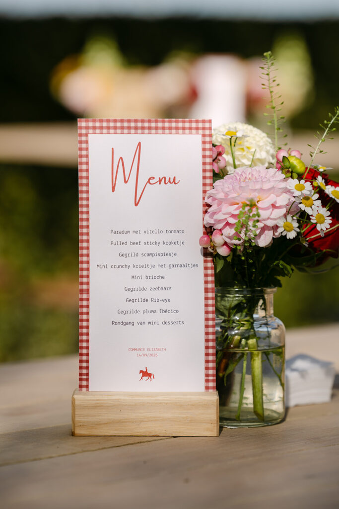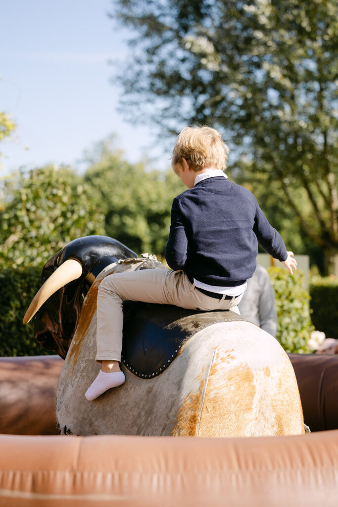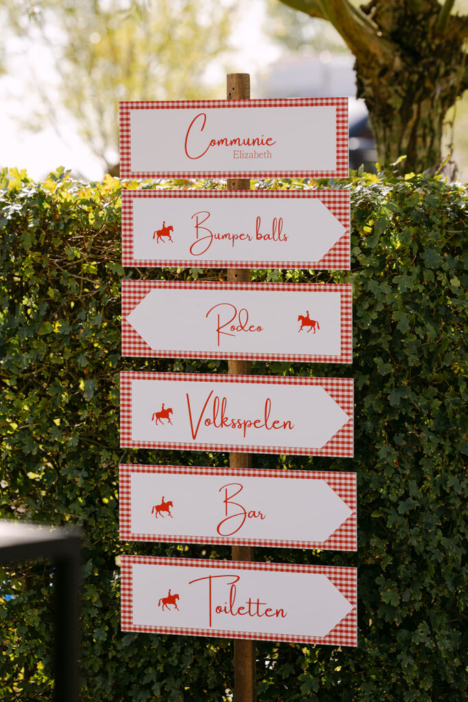Het communiefeest van Elizabeth, een echt paardenmeisje, werd een dag vol kleur en plezier. De styling, verzorgd door Atelier Rosé, bracht het paardenleven naar de locatie. Met kleurrijke bloemen, geruite accenten en strobalen, zorgden we voor een landelijke, gezellige sfeer. De goochelaar zorgde doorheen de dag voor verwonderde blikken, terwijl de volksspelen iedereen aan het lachen brachten.