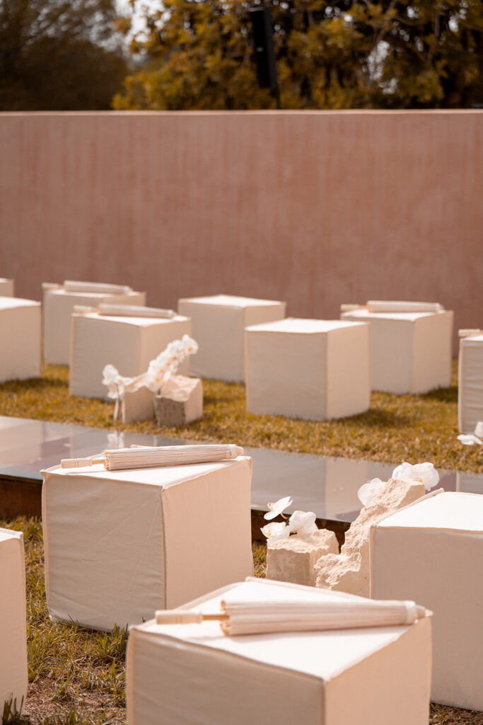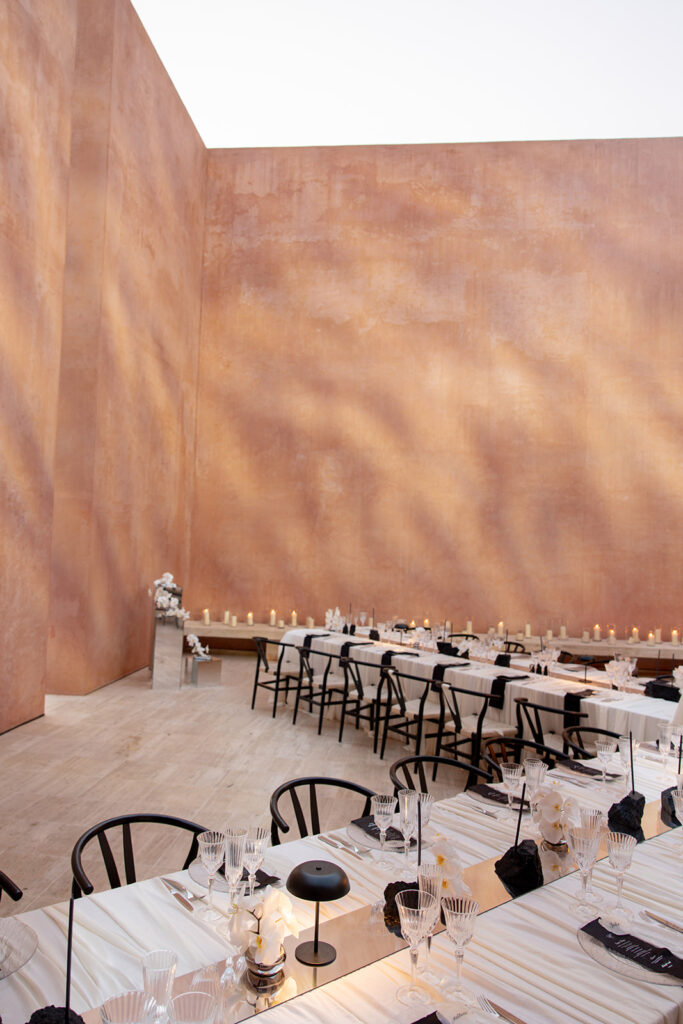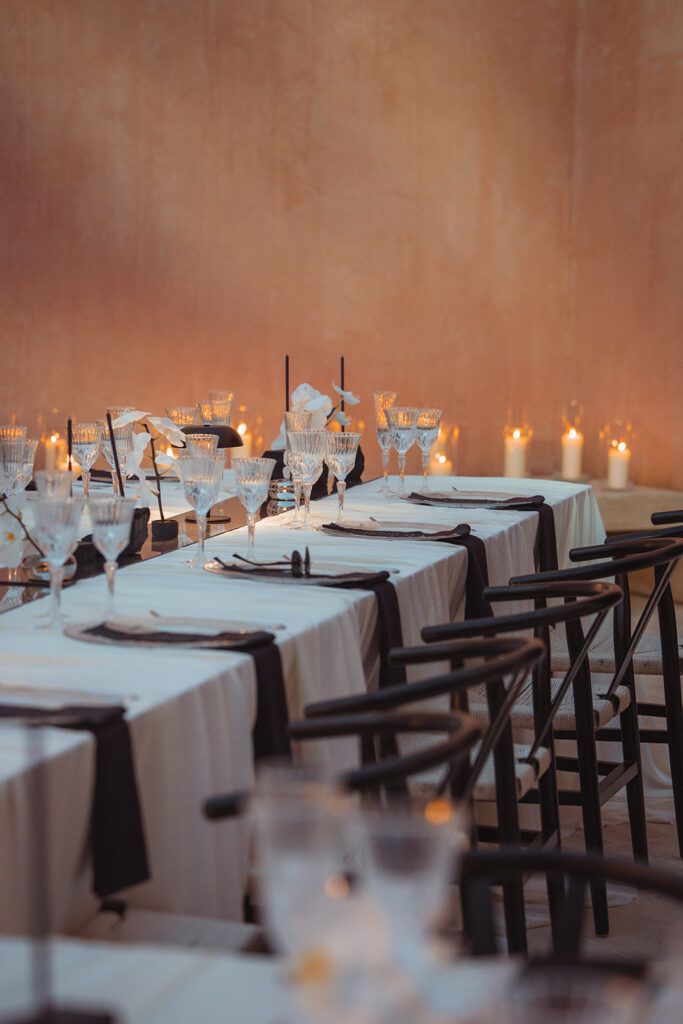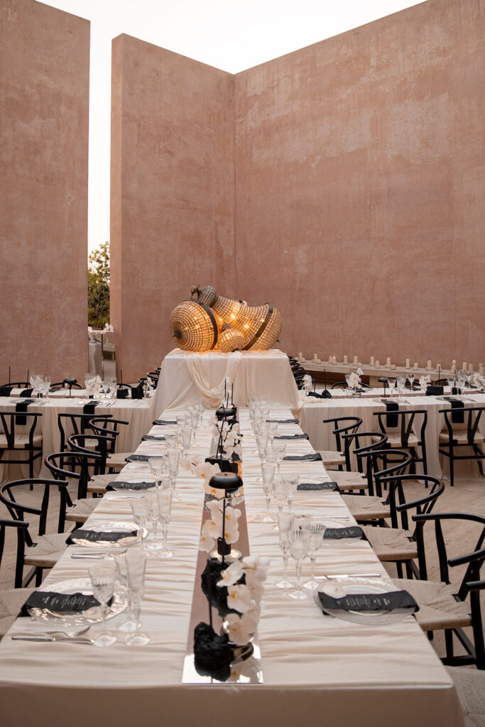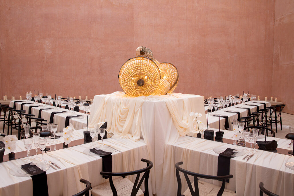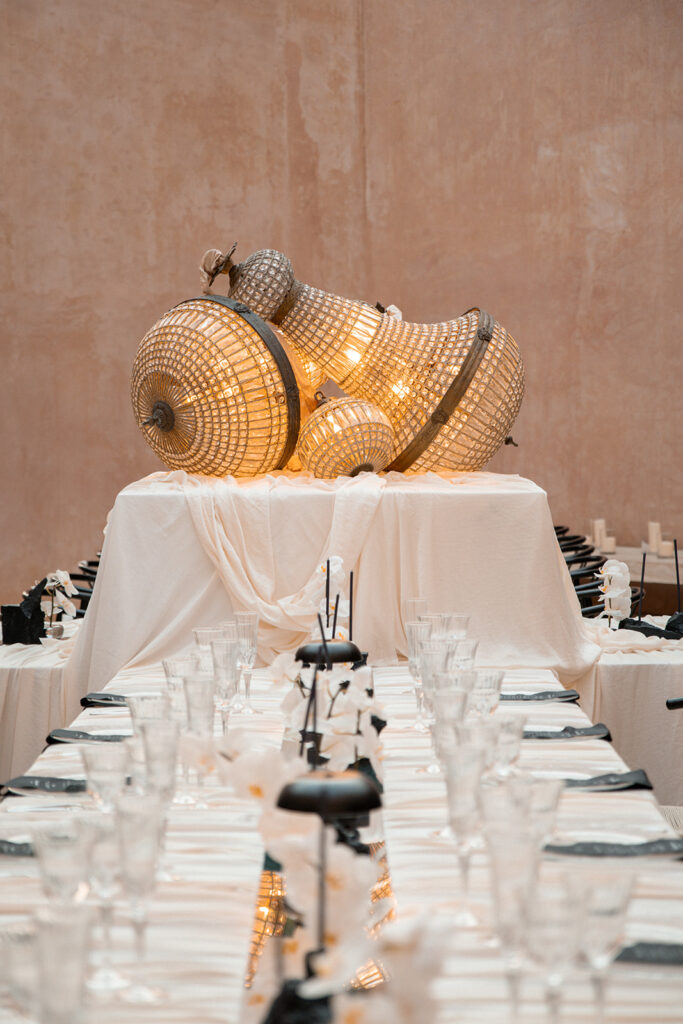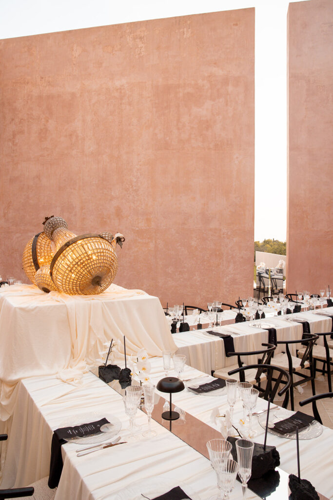 Met de locatie als basis voor hun feest, kwamen ze aankloppen bij Atelier Rosé om hun destination wedding dreams mogelijk te maken. Met een duidelijke visie voor wat het moest worden werd het een intense samenwerking om deze droom realiteit te maken. We gingen op zoek naar de perfecte partners, materialen, stoffen, zilverwerk… om een masterpiece neer te zetten.