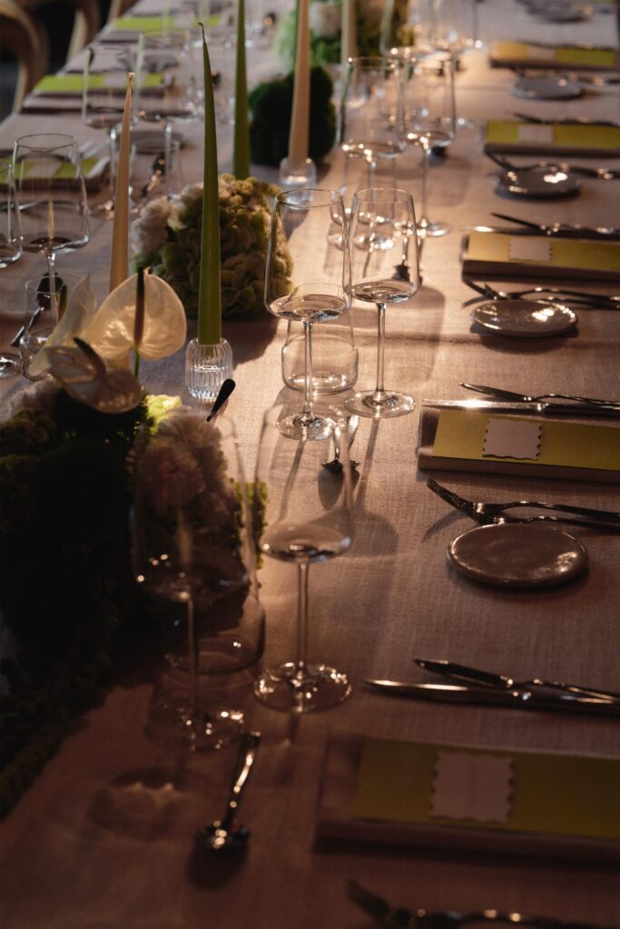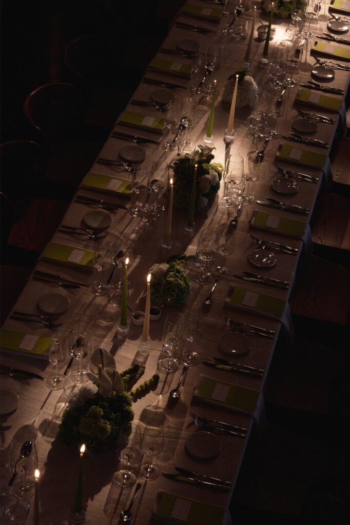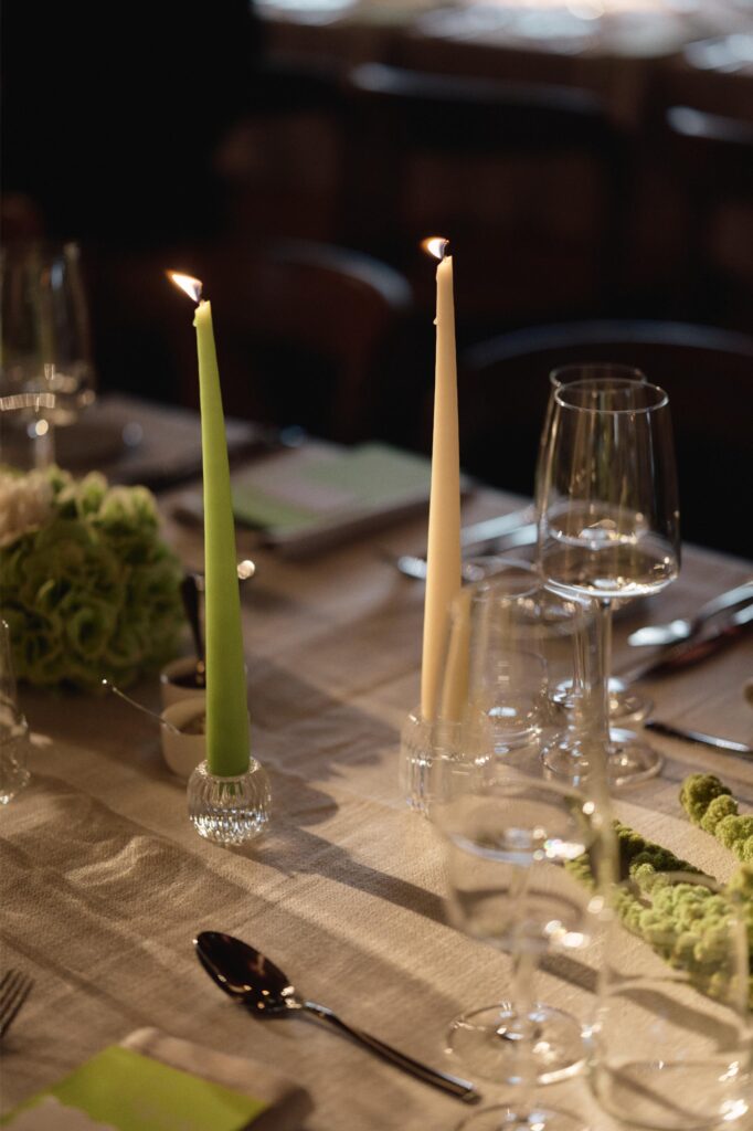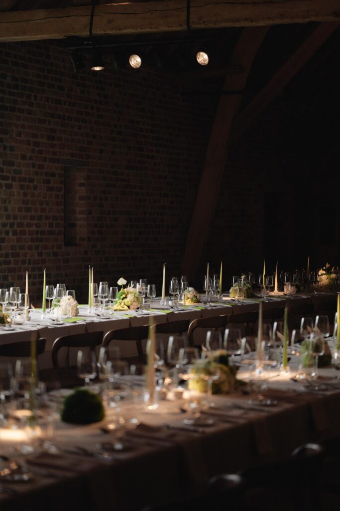 Een elegant feest voor Laura en Thibault in een prachtige hoeve in Damme, hoeve Amory, met de trendkleur Lime Green als hoofdkleur. Vertaald in moderne bloemstukjes, lange kaarsen, een prachtige mortex bar met accenten van walnoot.