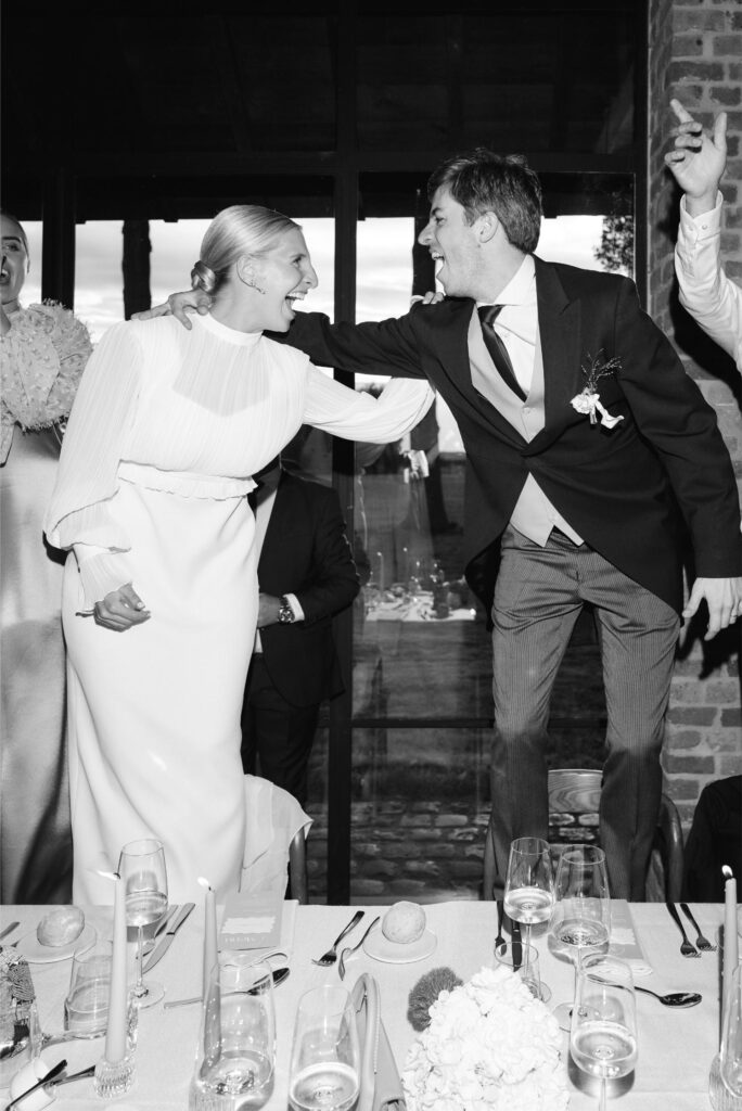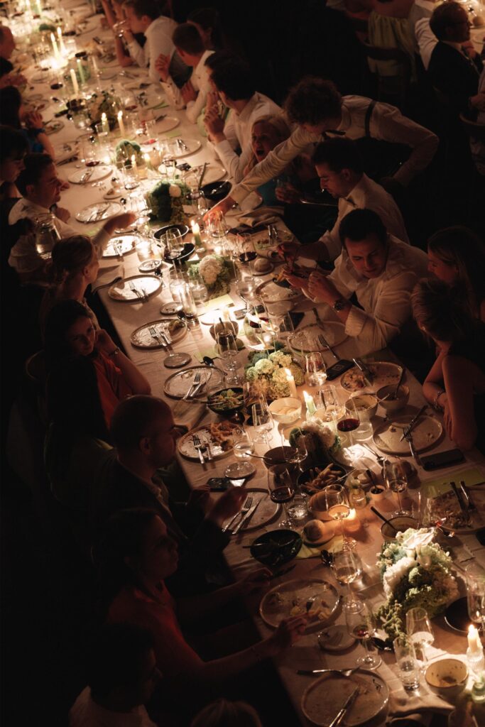 Klassevol, elegant maar vooral ook vreugdevol met veel ambiance, zodat er reeds op de stoelen kon gedanst worden tussen de gangen in. Geen saaie bedoening maar uitbundig de liefde vieren.