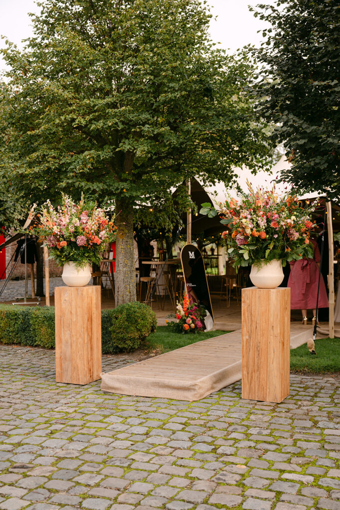 We mochten Lieze en Mathias begeleiden voor de styling en organisatie van hun grote dag in hoeve De Roode Poorte in Meetkerke.
